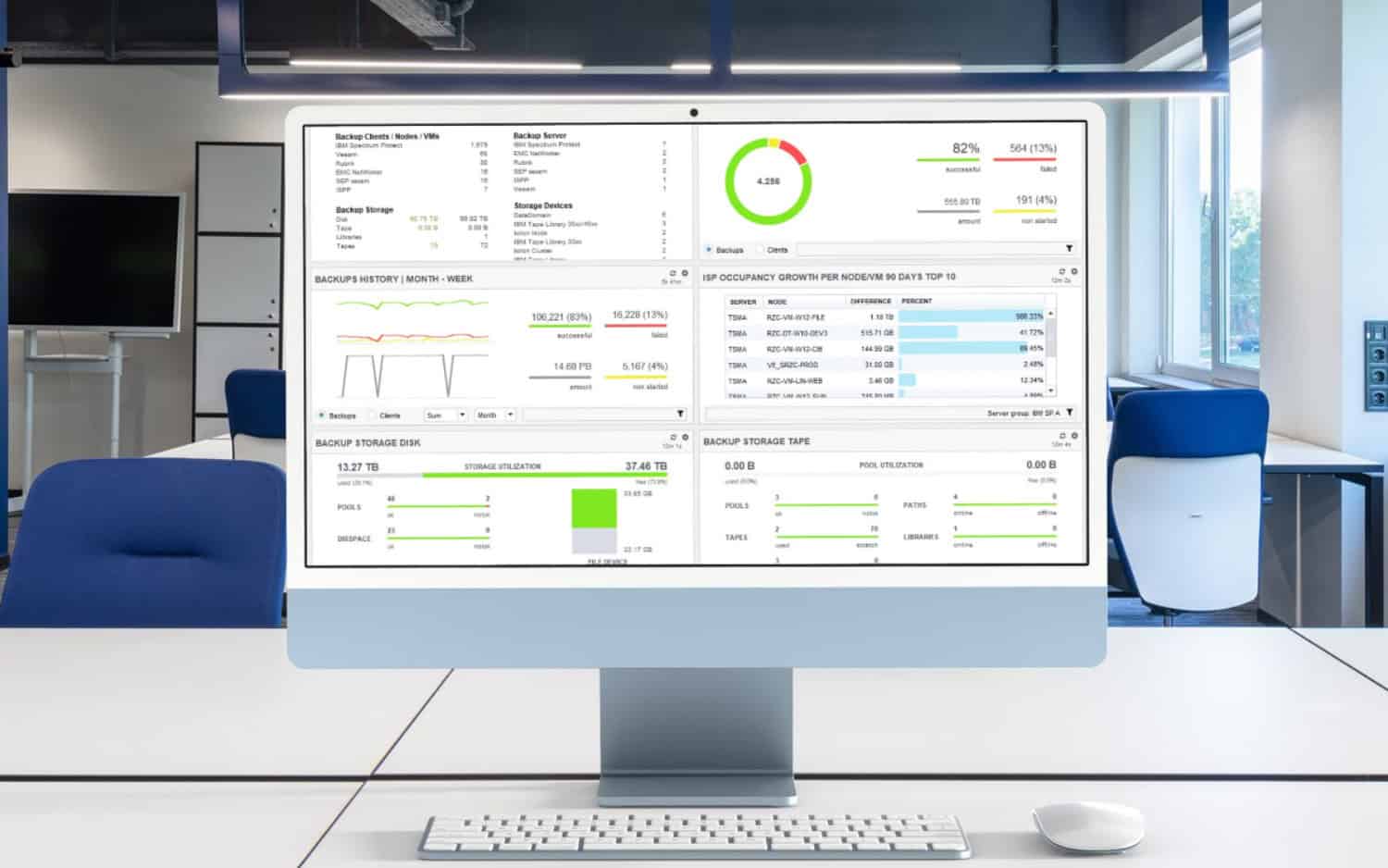 - Volle Transparenz: Alle Backup-Systeme und Speichergeräte werden lückenlos überwacht – keine blinden Flecken.